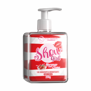 O Show Girl Gel Hidratante e Aromatizante Morango com Creme da Via Charm Cosméticos proporciona uma experiência sensual e única, com toque aveludado que intensifica o prazer e a conexão entre parceiros.